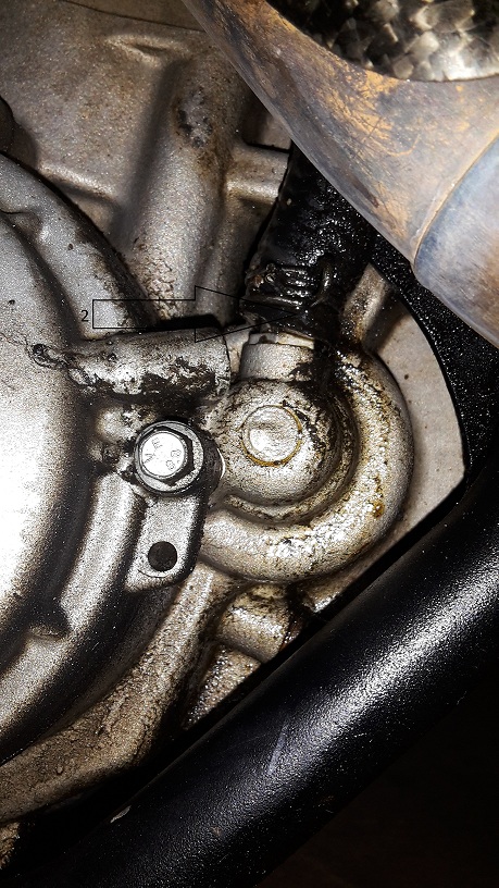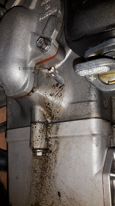 J'ai pris qq photos car j'ai aussi de l'huile je pense qui coule du moteur(numero 1 sur les photos). le numero 2 des photos doit etre le reniflard qui fuit aussi pas mal.