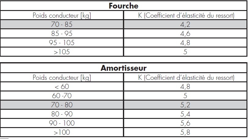 j'ai acheté ma 300rr 2014 d'occasion cette année et je suis sur que les ressorts ne sont pas adapté (l'amortisseur est resseré à fond pour avoir 11cm de précontrainte ar .J'aimerais donc changé mon ressort arrière mais je ne connais pas la convenance pour me 93 petits kilos .. :oops: