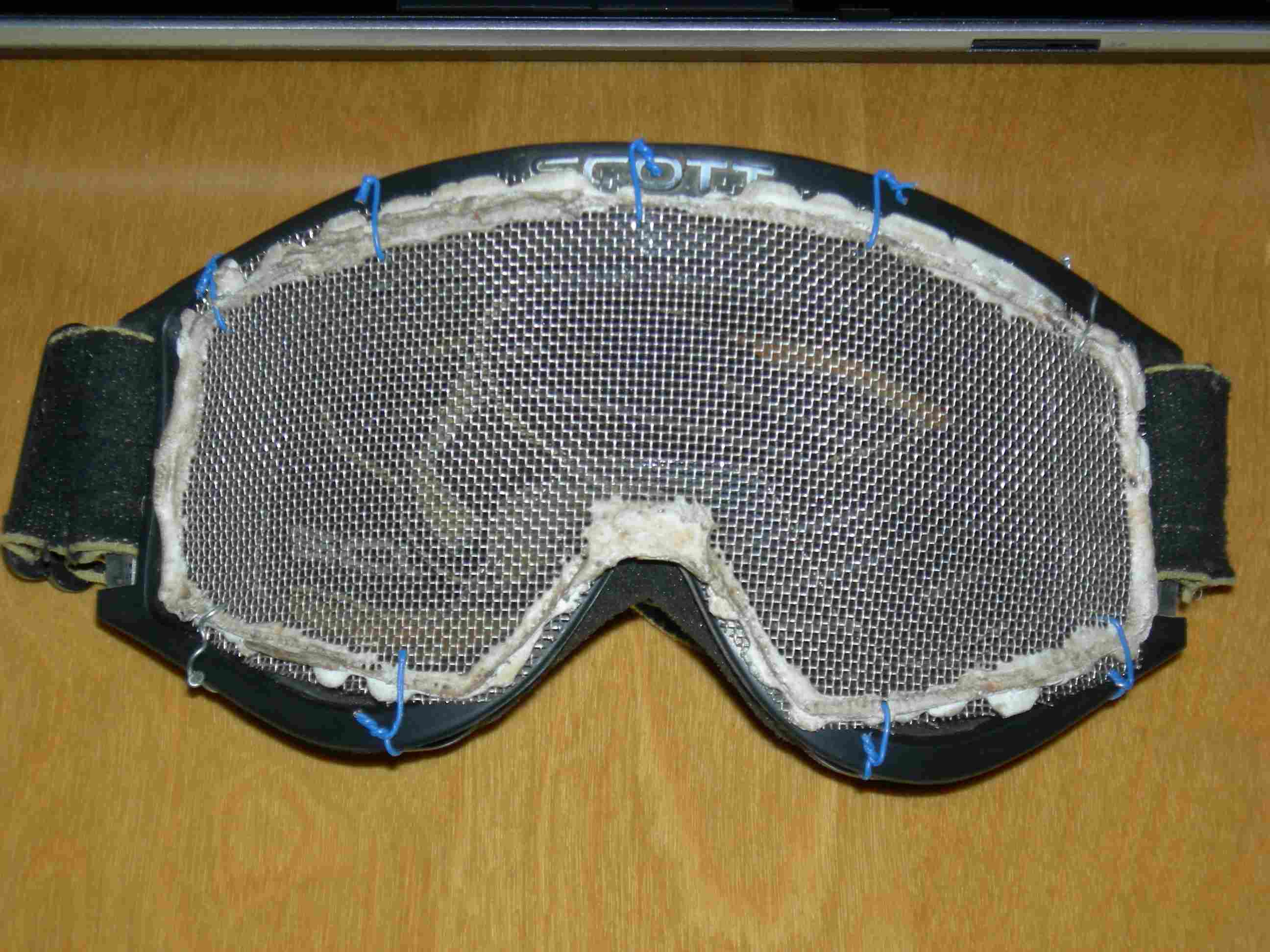 C'est facile, tu prends ton vieux masque, tu vire l'écran tout pourri, t'achète un bout de grillage assez fin à 3 francs, tu l'découpe, tu l'fixe et zou c'est fini.