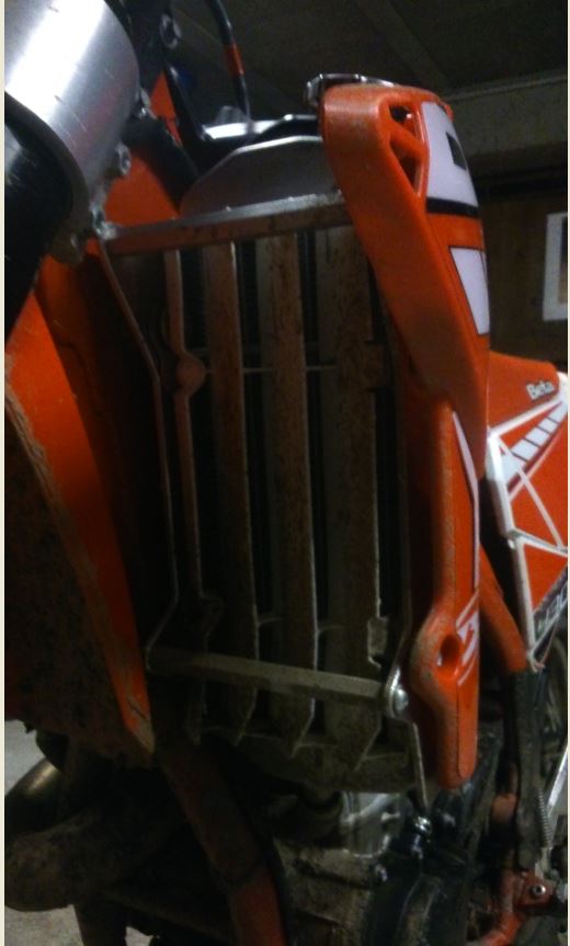 Pour éviter que sur un gros coup de guidon tu viennes tout écraser, règle tes butées de direction juste au niveau des protections de radiateur.