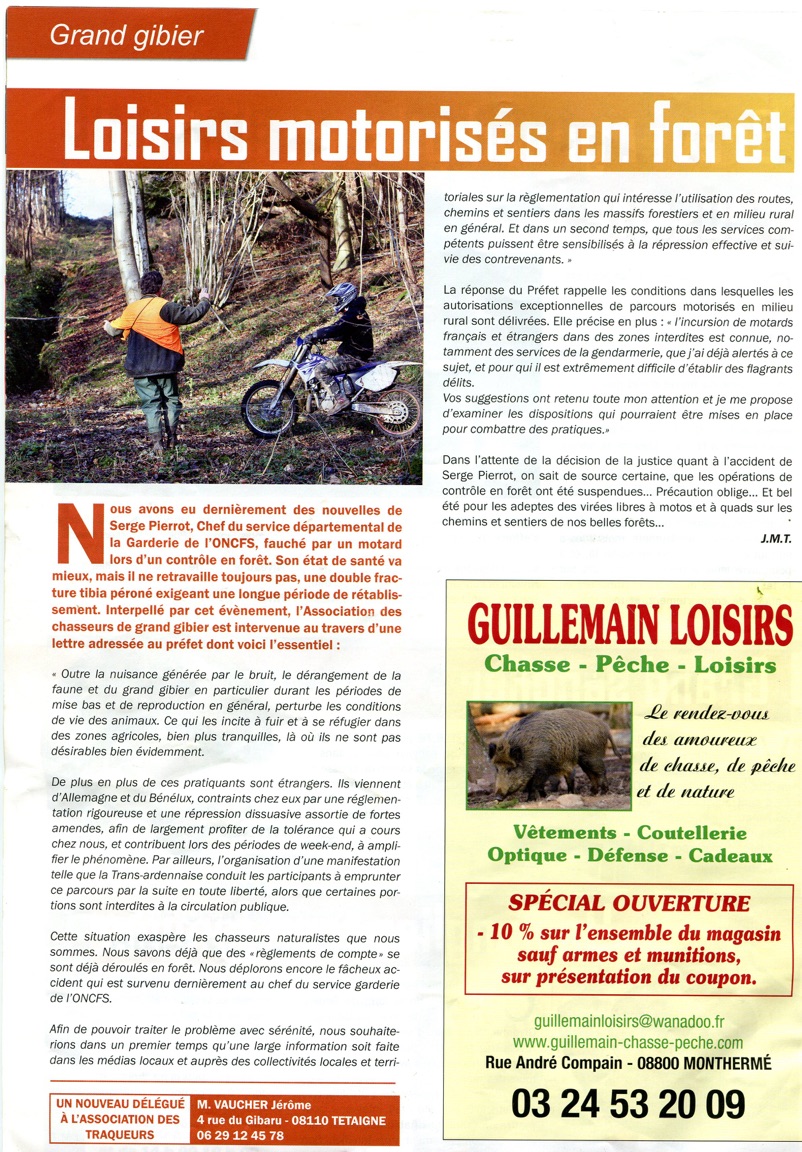 Il est exact qu'il y a eu des tensions en Ardennes du fait de contrôles un peu "orientés agressifs" qui ont déplu aux locaux, puis un accident survenu à un garde ONF.