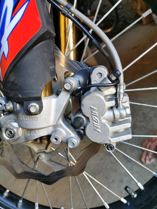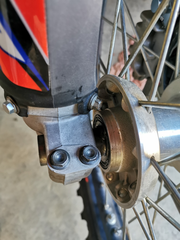 Il m'a fallu changer les vis de fixation du disque, trop épaisses, elles venaient taper dans la patte de déport.