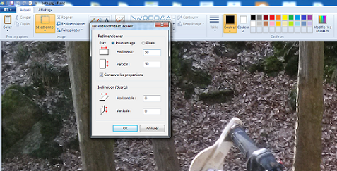 Choisir l'option "redimensionner " puis mettre la valeur de réduction en pourcentage souhaitée dans la case largeur (dans l'exemple 50%).