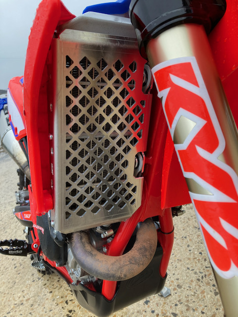 J'ai monter les mêmes protection de radiateur cet après midi (de chez ptech par contre), ça a l'air vraiment solide a voir dans la boue si ça ne s'obstrue pas et ne fait pas chauffer la moto :geek:
