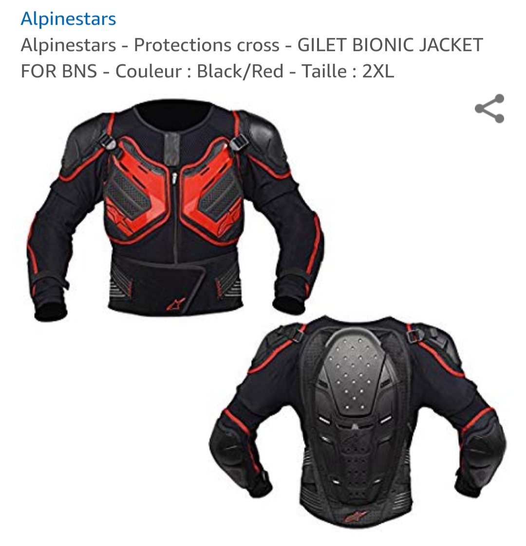 J'ai eu le même souci que toi, et maintenant j'ai un troy lee design 7855 et la tu es très bien protégé sur tout le haut de corps et en plus hyper confortable.
