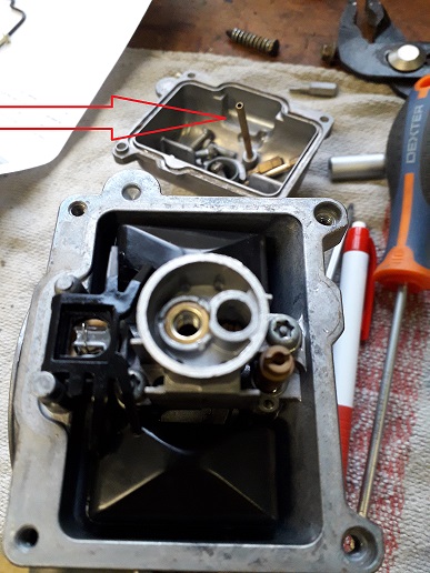 L'inclinaison du carbu pour trouver le point de contact du pointeau est délicat à trouver car le ressort pointeau est hyper souple. J'incline le carbu dans mes mains comme si la bécane était horizontale (je regarde de dessus le carbu de profil... clair?