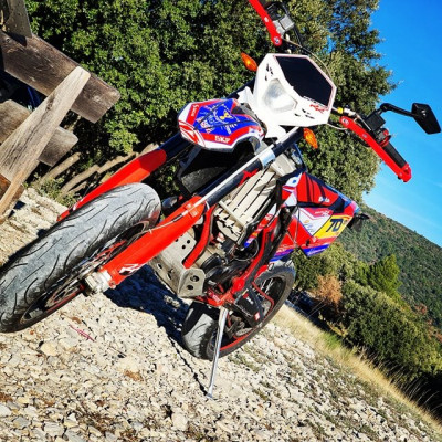 Je roule avec une BETA 450 de 2011 en enduro et en supermot', ma copine roule en BETA 125 de 2019 et je fais partis de BRZ CREWW ou nous avons en plus une KTM 450, Yamaha XTX660, BETA 350, KTM 250. Nous sommes pas mal actifs sur Instagram ou Snap (@brz_creww)